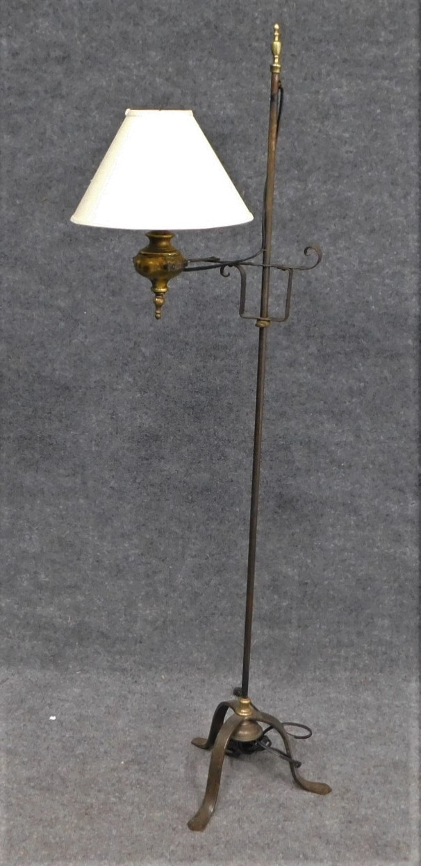 Lamp has adjustable arm, as shown. Some wear on the metal. Shade included.