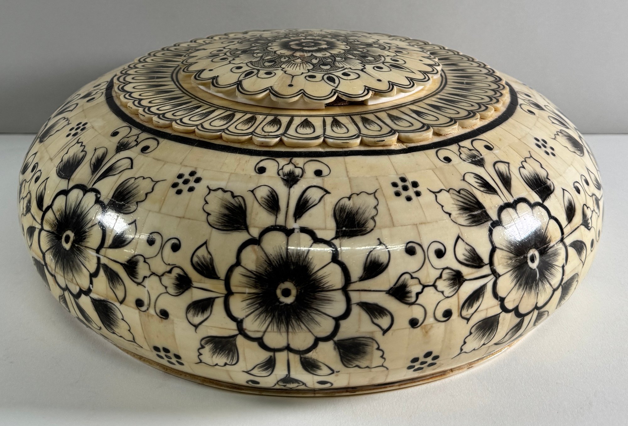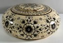 Includes a round decorative box with lid featuring floral designs and a smaller rectangular box with leaf decorations. Large box: 4 x 11 inches. Small box: 1.5 x 3.75 inches (approximate).