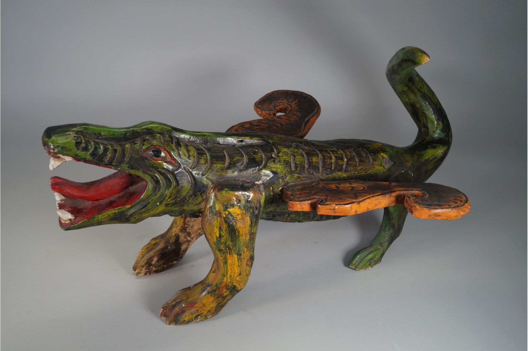 Solid wood, hand made folk flying dragon. In good used condition.