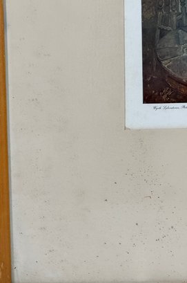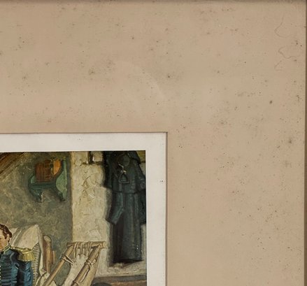 Print is in average condition. Some foxing and staining to matte. The frame shows wear consistent with age. The backing paper has staining and wear.