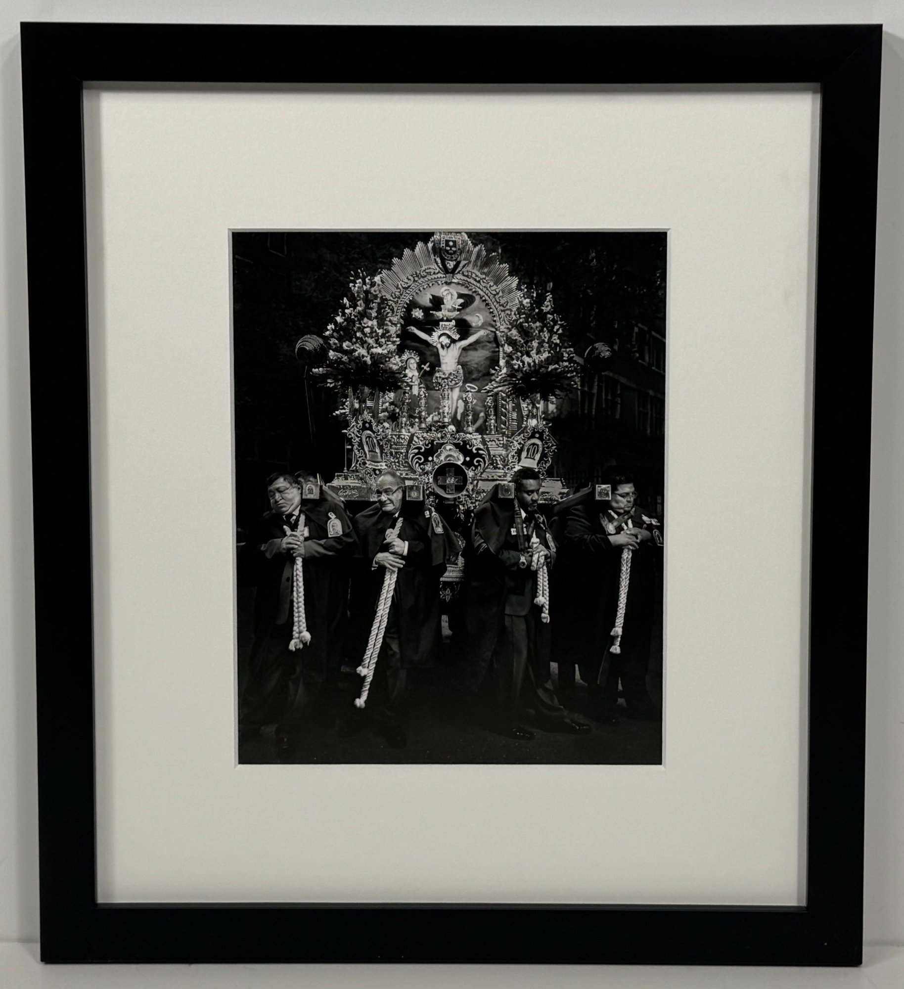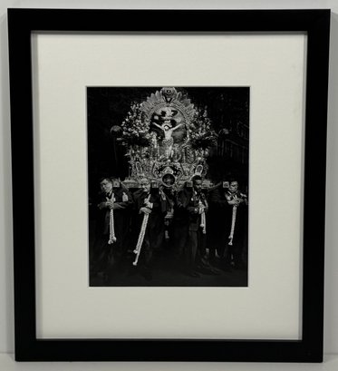 Black and white print depicting a religious procession. Framed and matted. Dimensions: 17 x 15 inches.