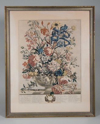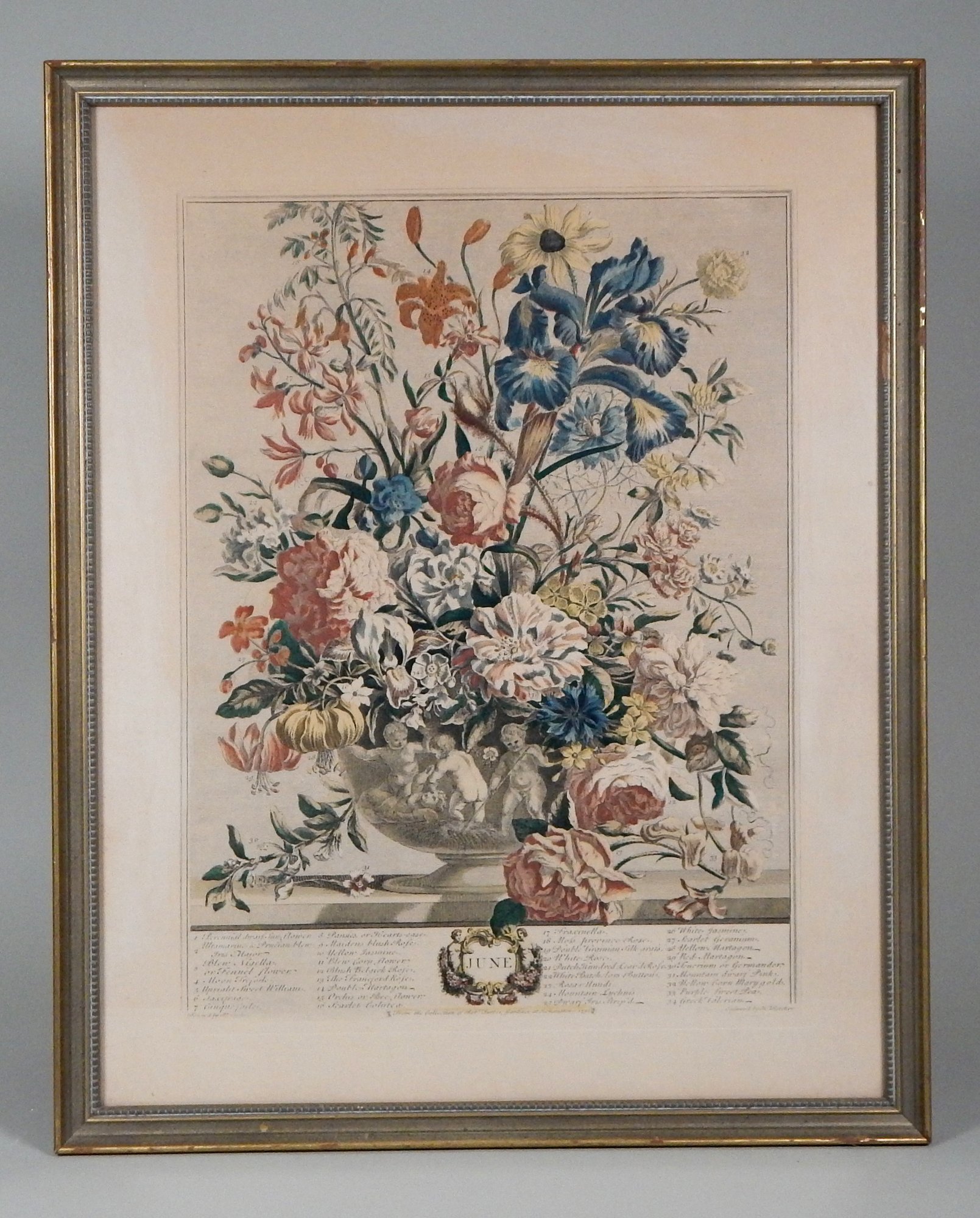 Vintage "June" open edition lithograph, engraved by Henry fletcher from "Twelve Months Of Flowers".