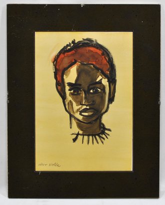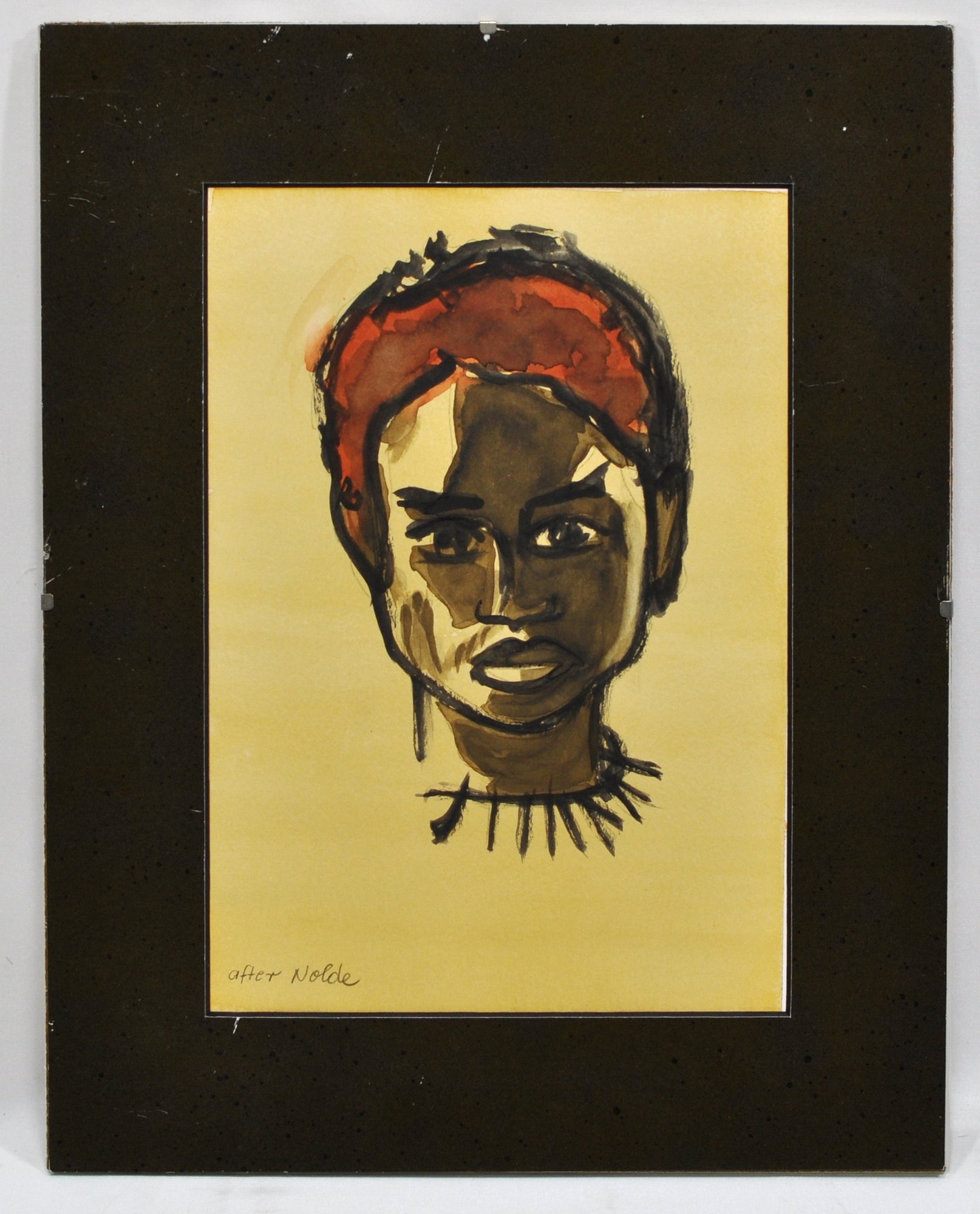 Aborigine Girl portrait watercolor painting after Emil Nolde by Hilde Gesch.