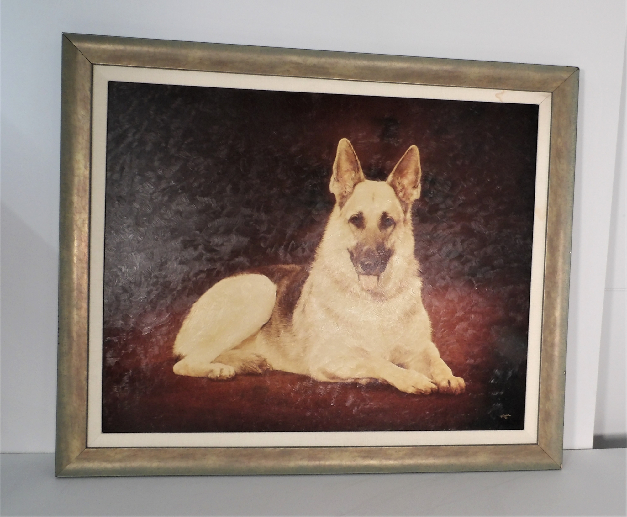 Listed is photographic print of a German Shepard and signed "Marc 2000".