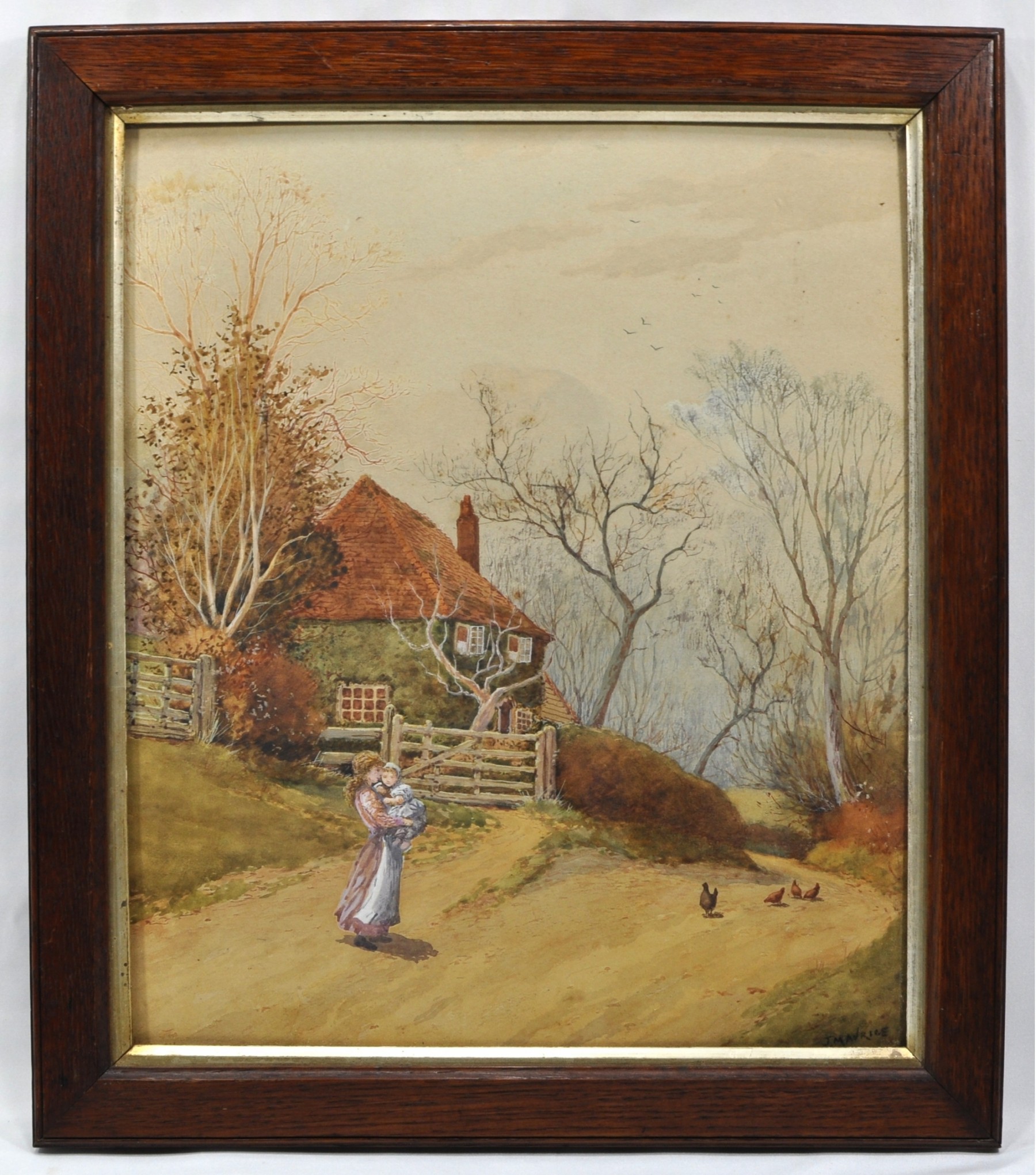 Charming antique watercolor by listed artist Jean-Baptiste Maurice.