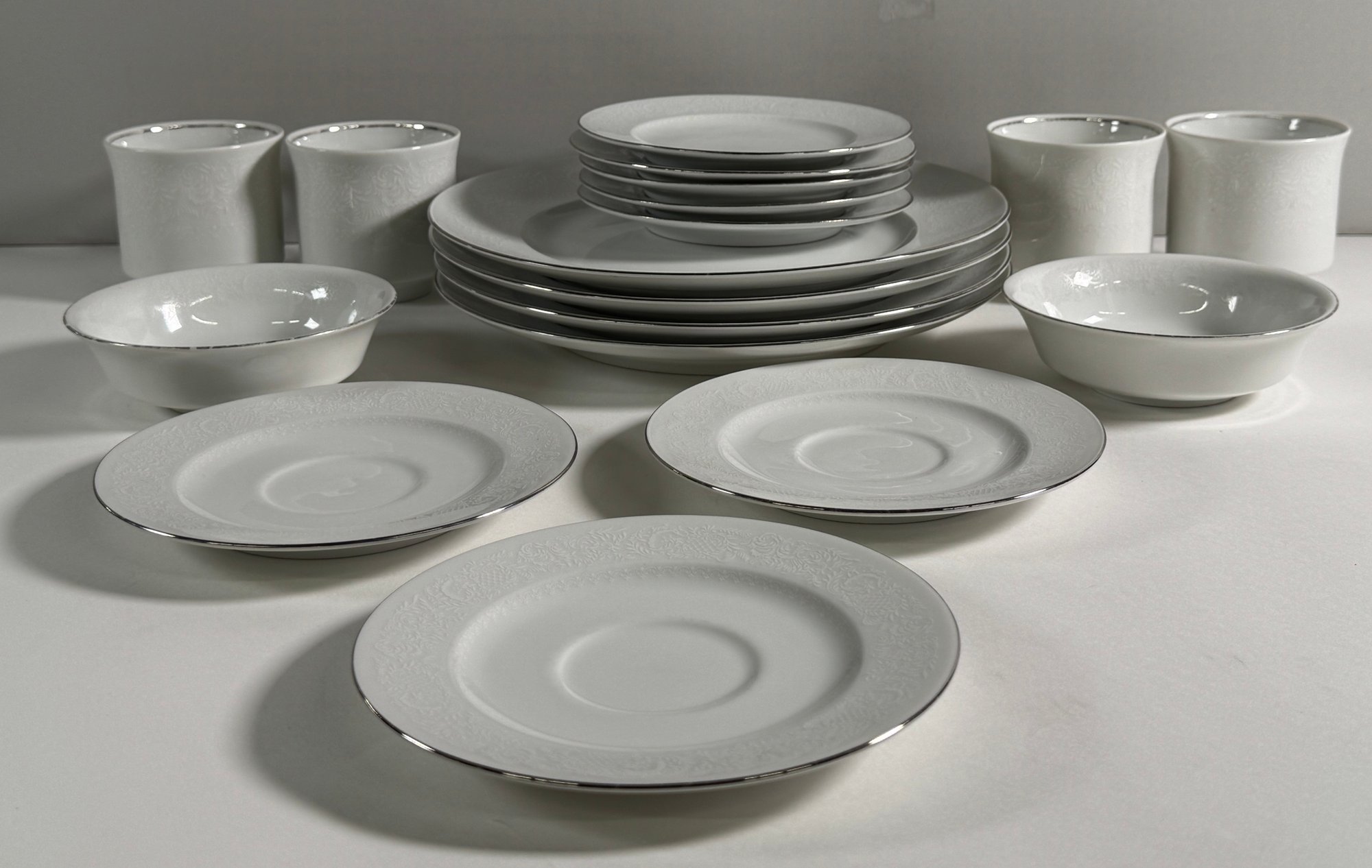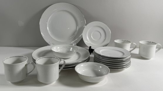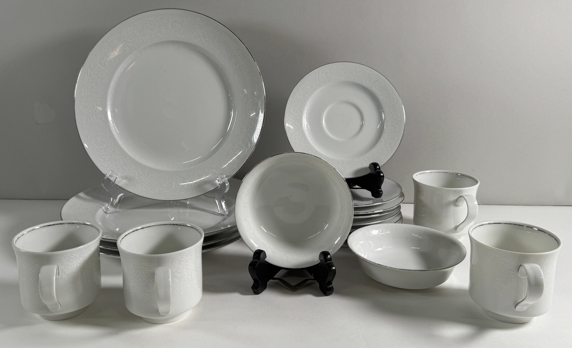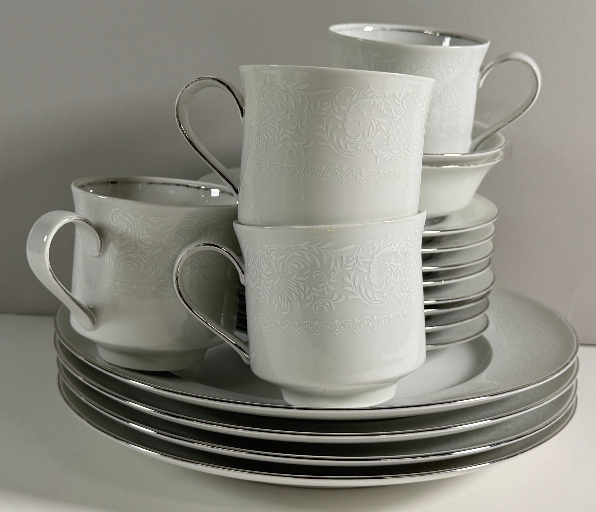 Johann Haviland Bavaria Germany porcelain set. Includes plates, bowls, saucers, and mugs. Largest plate measures approximately 12.5 inches. Mugs measure approximately 3.25 x 3.25 inches.