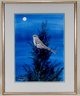 Attractive original watercolor painting of a mockingbird on the top of the tree late evening.