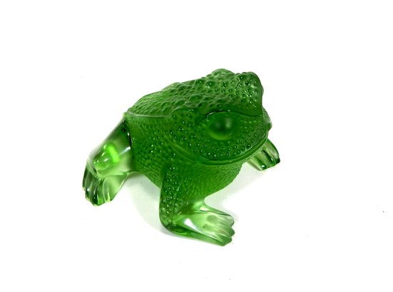 Lalique crystal frog figure or paperweight, hand signed and dated by Marie Claude Lalique.