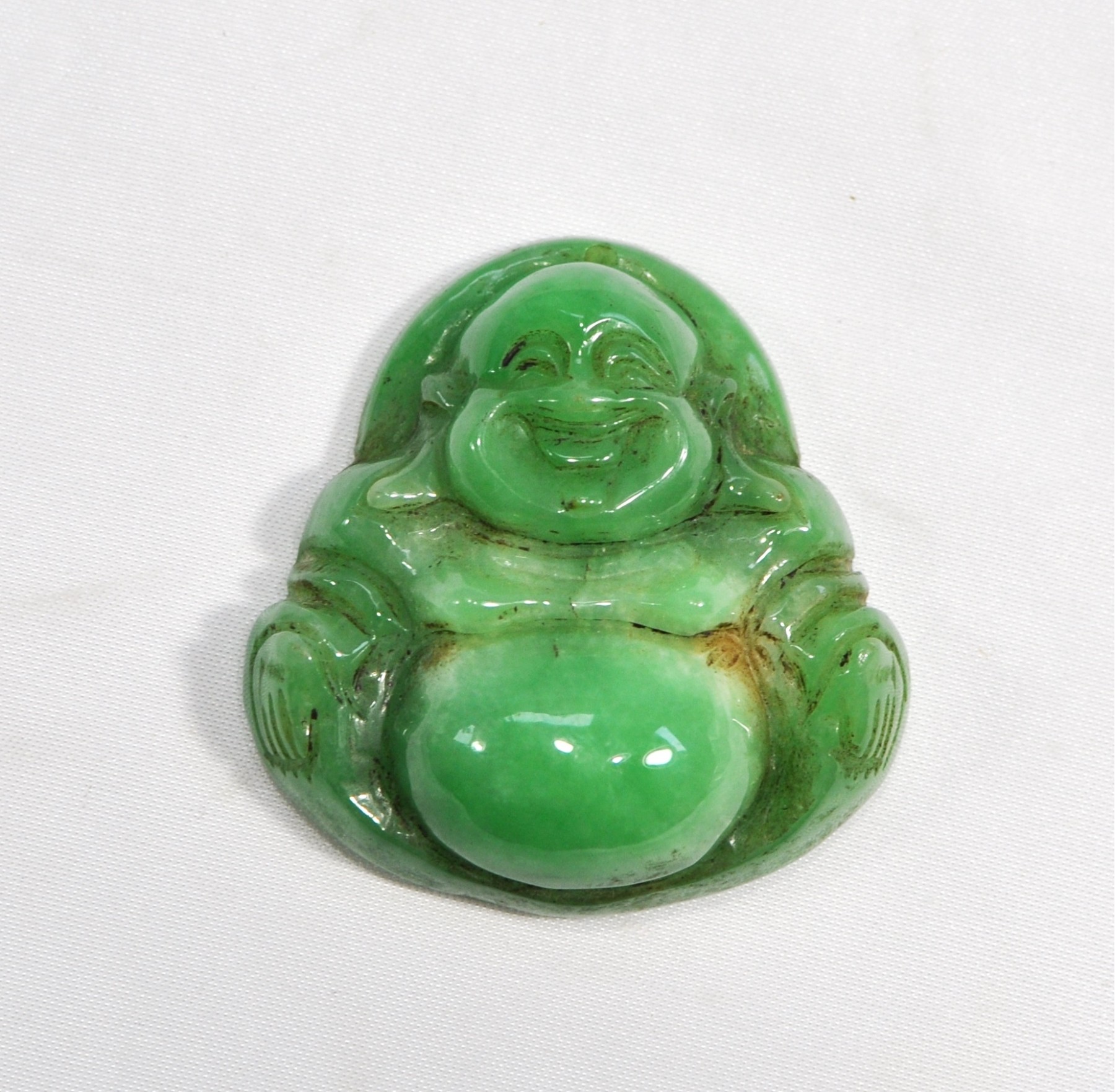 Smiling Buddha carved jade pendant.