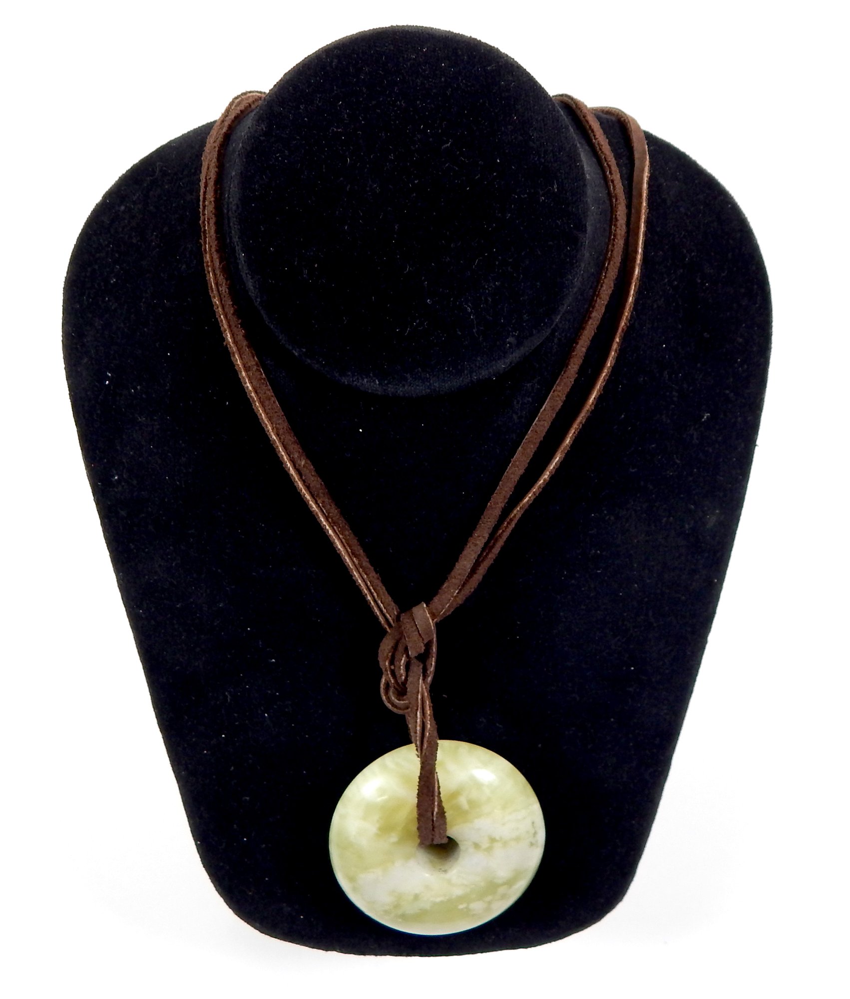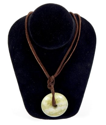 Large carved stone pendant on leather,