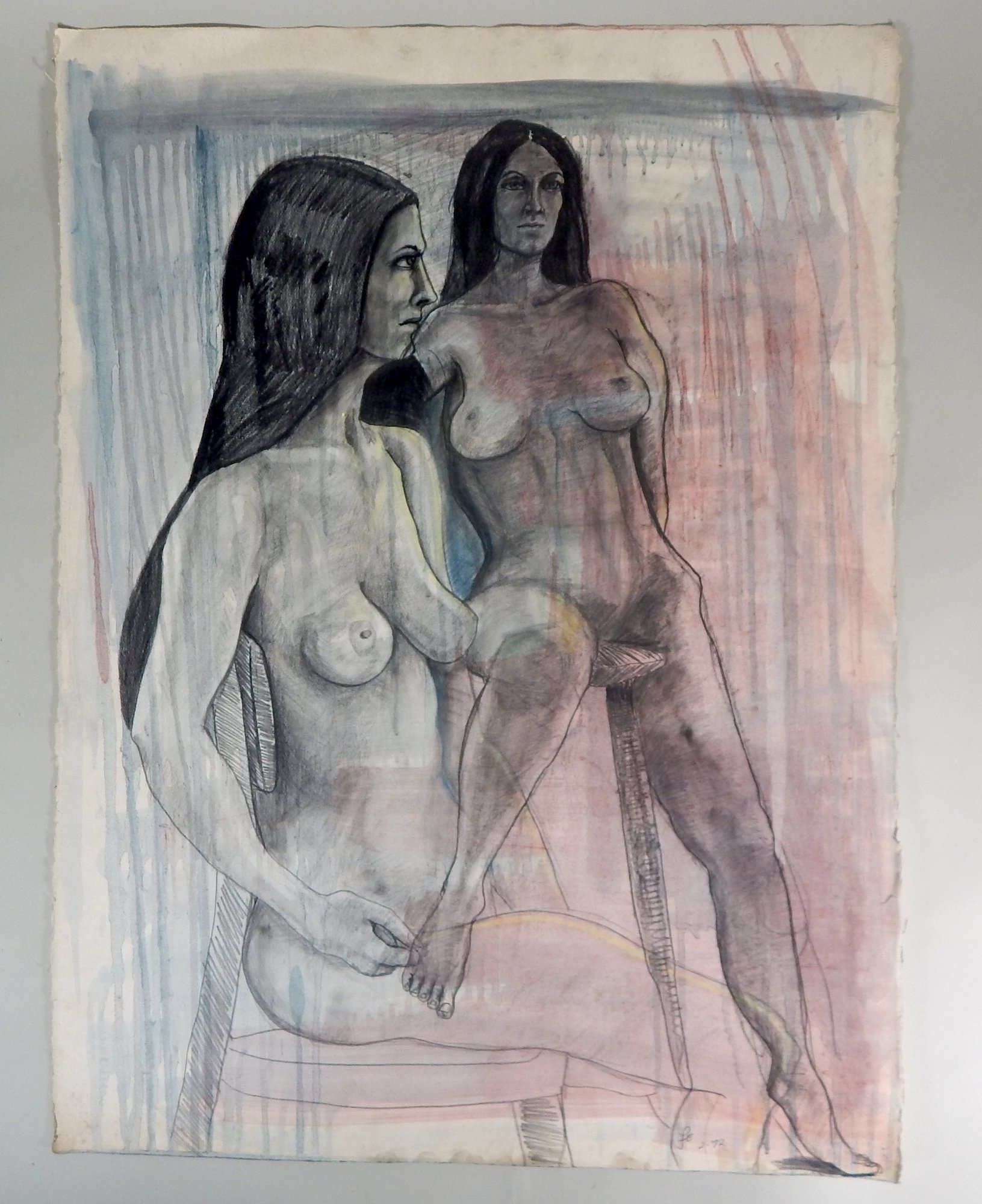 Pencil drawing of two nude girl on heavy artist paper.