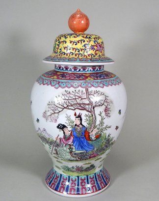 Large Chinese hand painted porcelain lidded vase in very good condition.