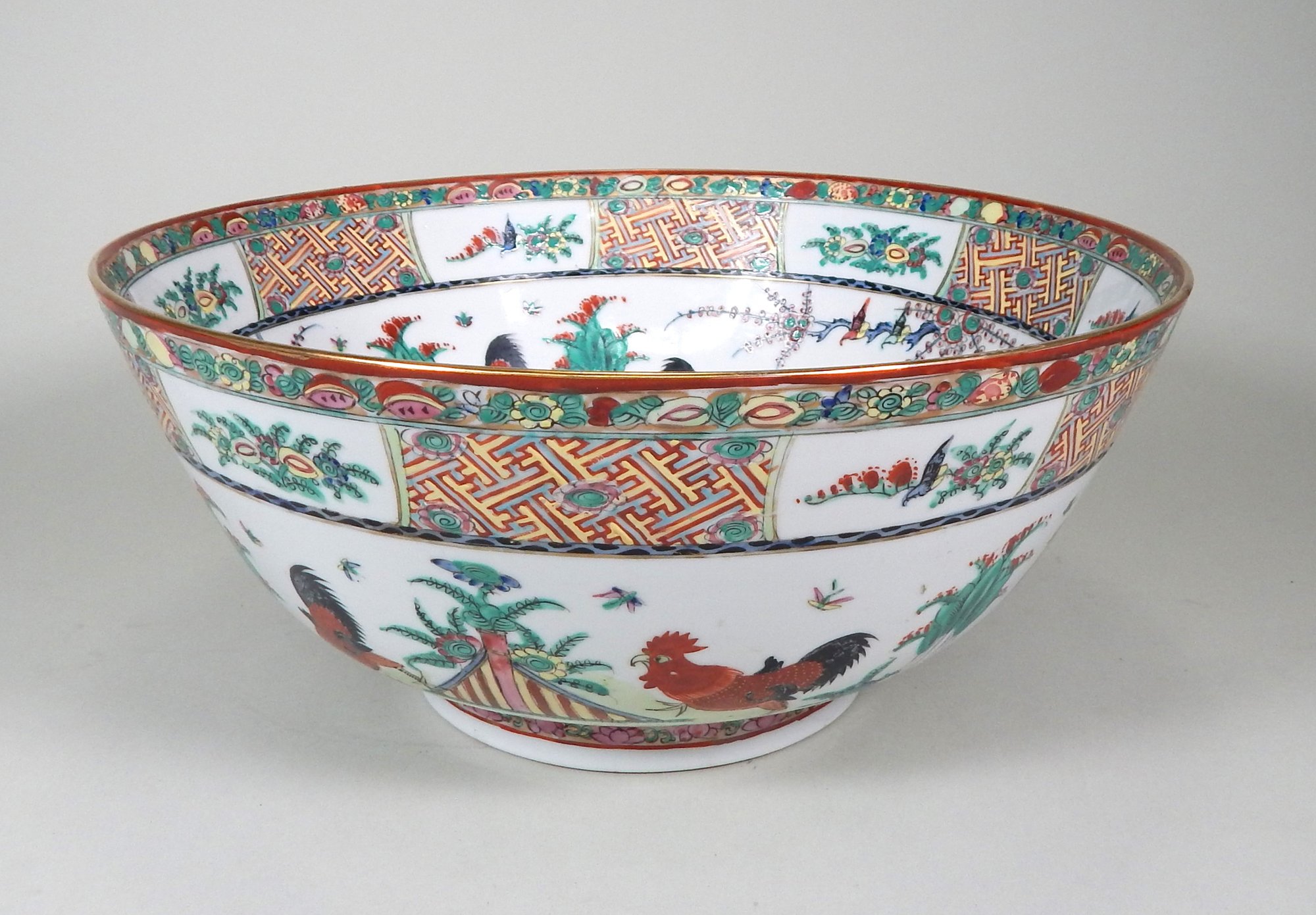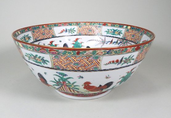 Stunning large bowl hand painted in Hong Kong measures 14" in diameter x 6.5"h