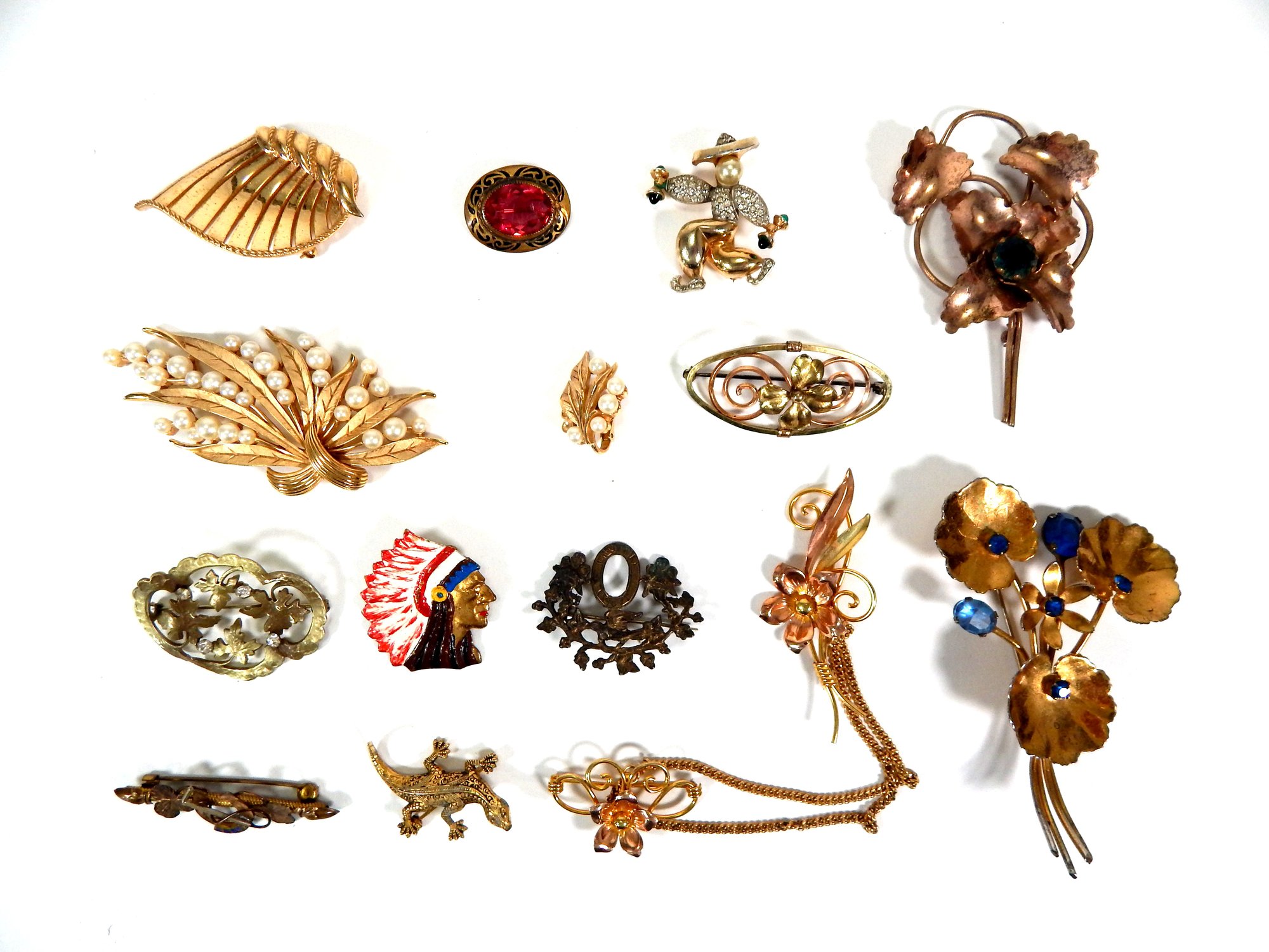 Nice lot of antique and vintage brooches, including Triffary and Van Dell.