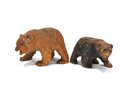 Wood carvings of bears with glass eyes.