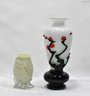 Small footed vase and Peking Glass vase with overlay red blossom tree.