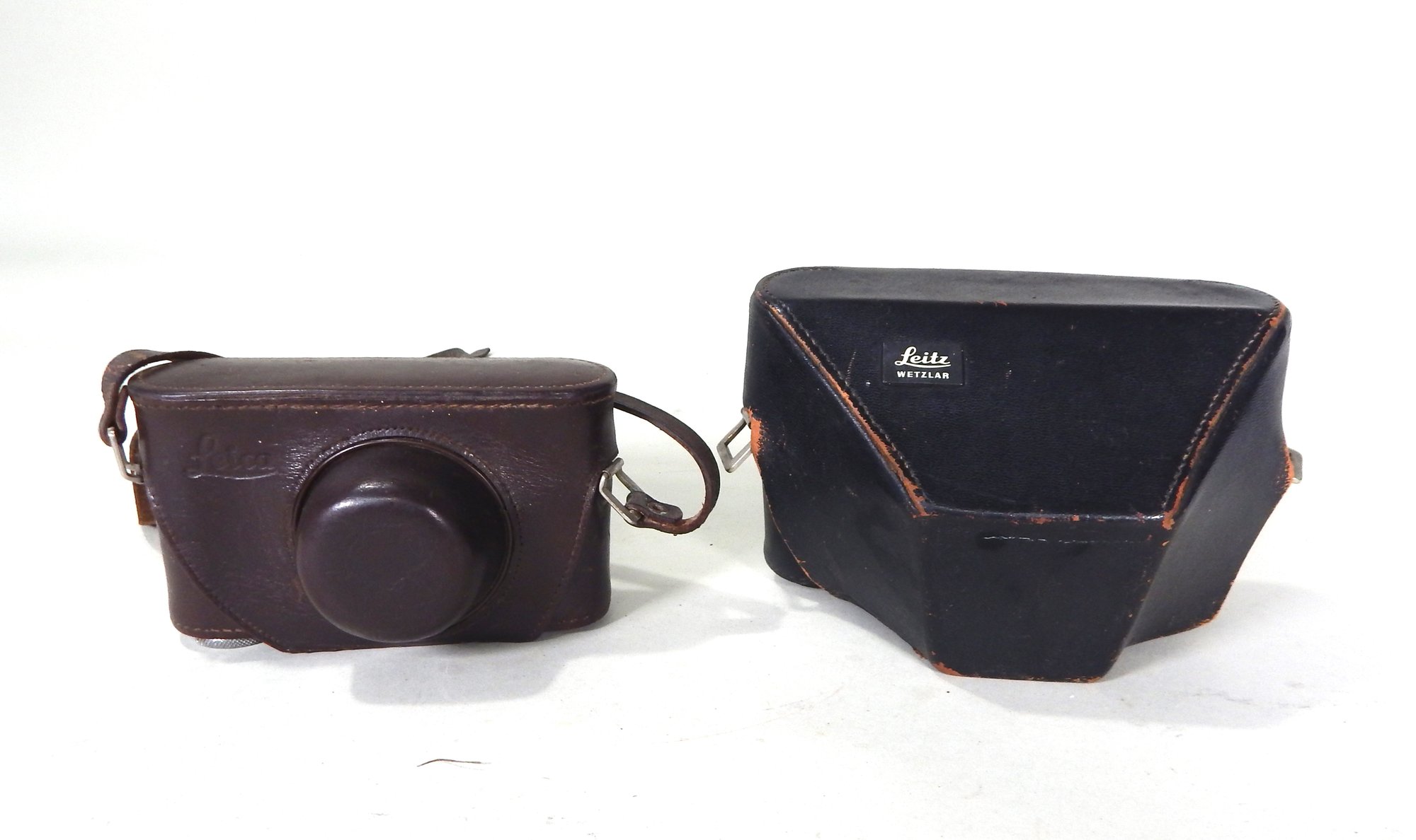 Two used leather camera cases from the 1930's.