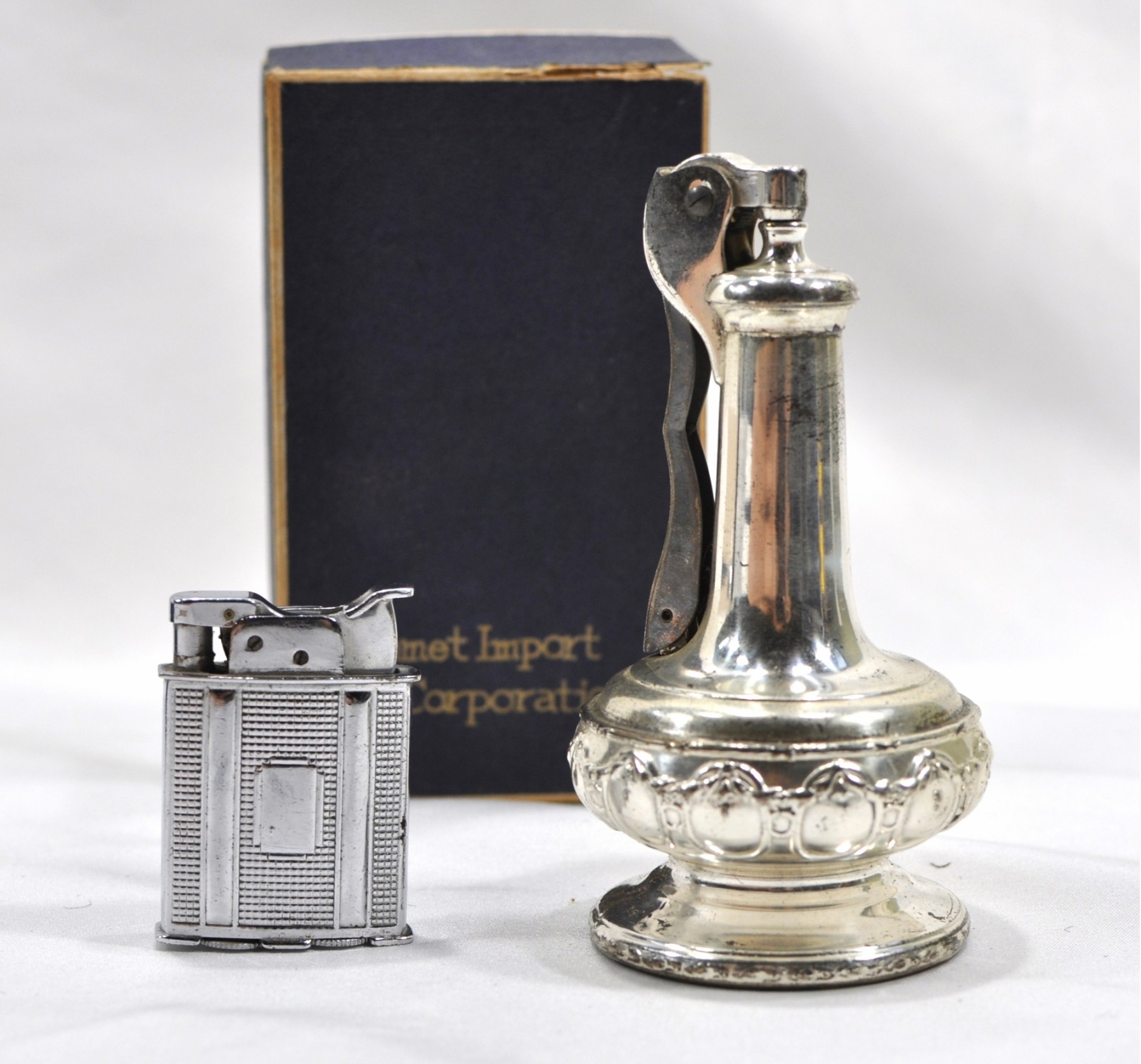 Comet Japan Desk lighter with box and Evans trig-a-lite.