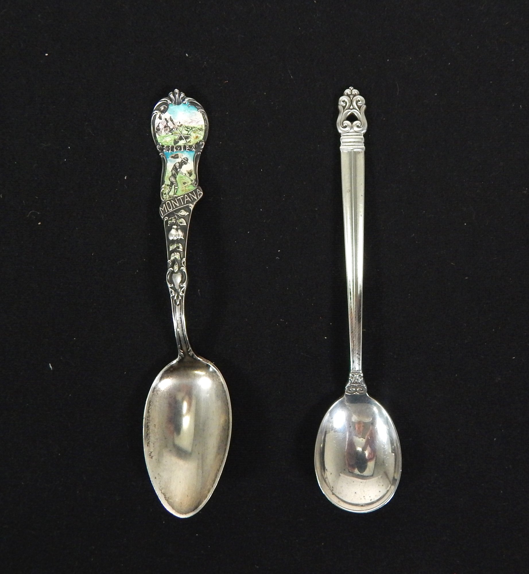 Montana Souvenir spoon with enamel and Royal Danish tea spoon by International silver.