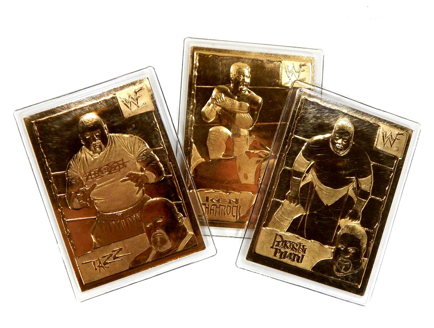 Mint condition wrestling cards 22K gold finish.