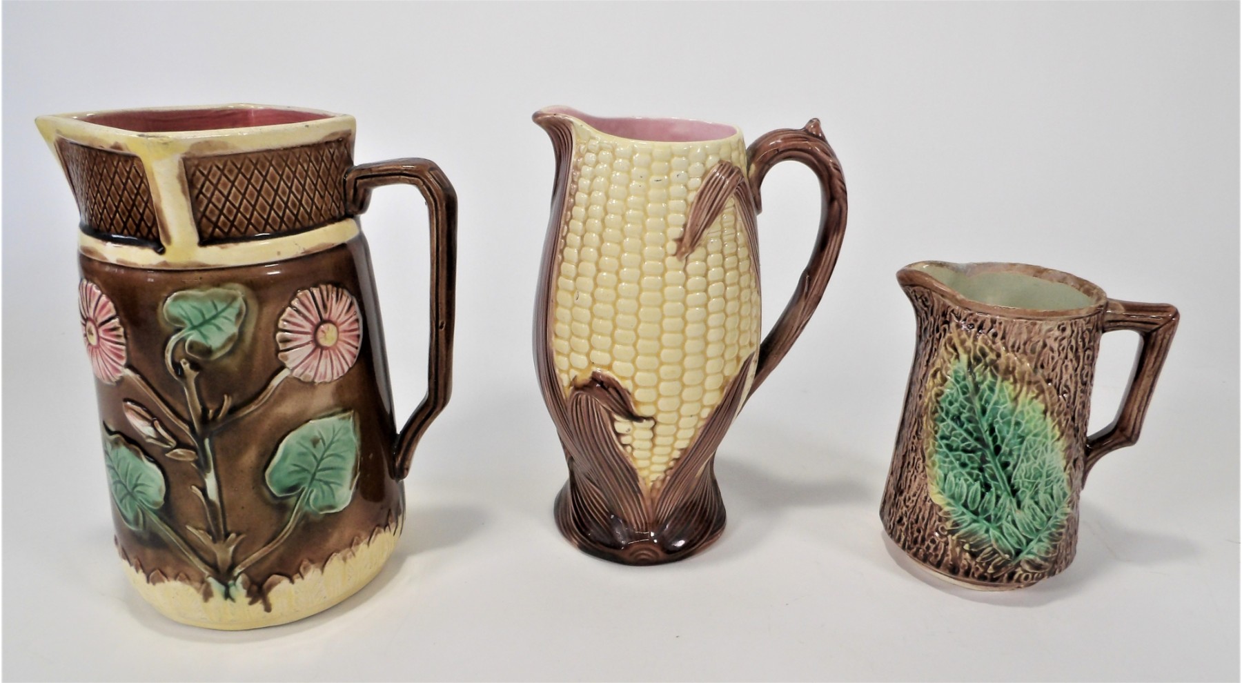 2. Corncob yellow/brown/pink pitcher 8.25" - very good condition.