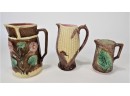 3. Large brown/yellow/green/pink pitcher 8.5" - surface cracking on the bottom.