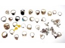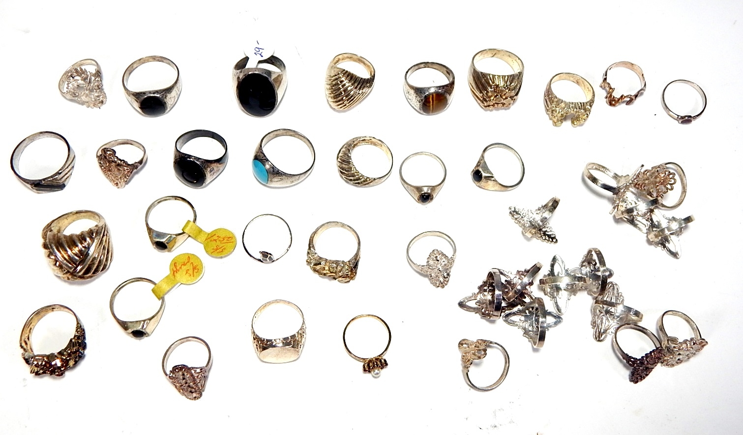 Lot of various sterling silver rings, some with price tags- dealer stock.