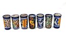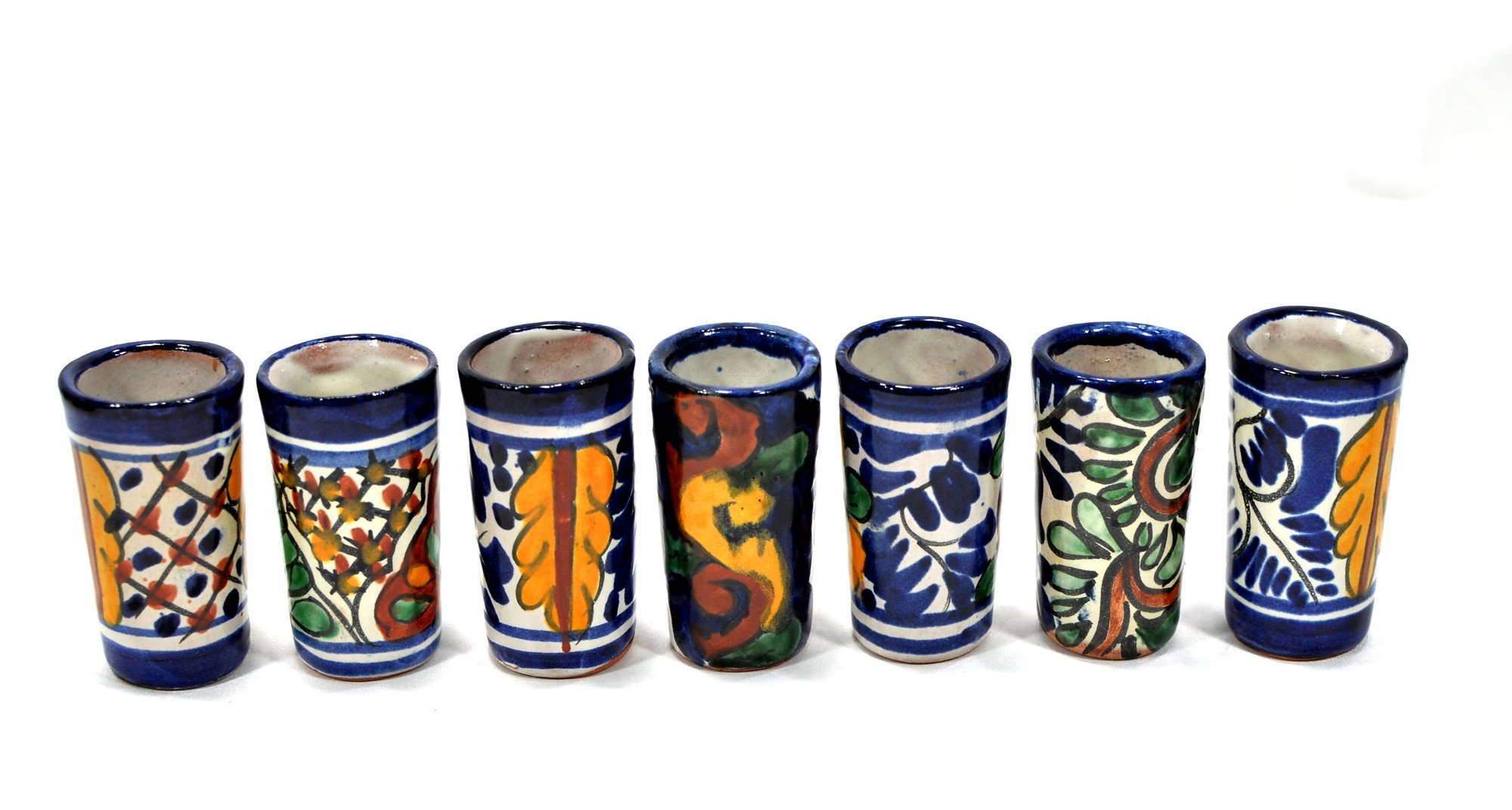Colorful Mexican hand painted art pottery shot glasses.