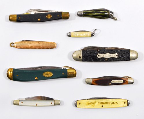 Lot of 9 vintage folding knifes of different sizes by various brands.