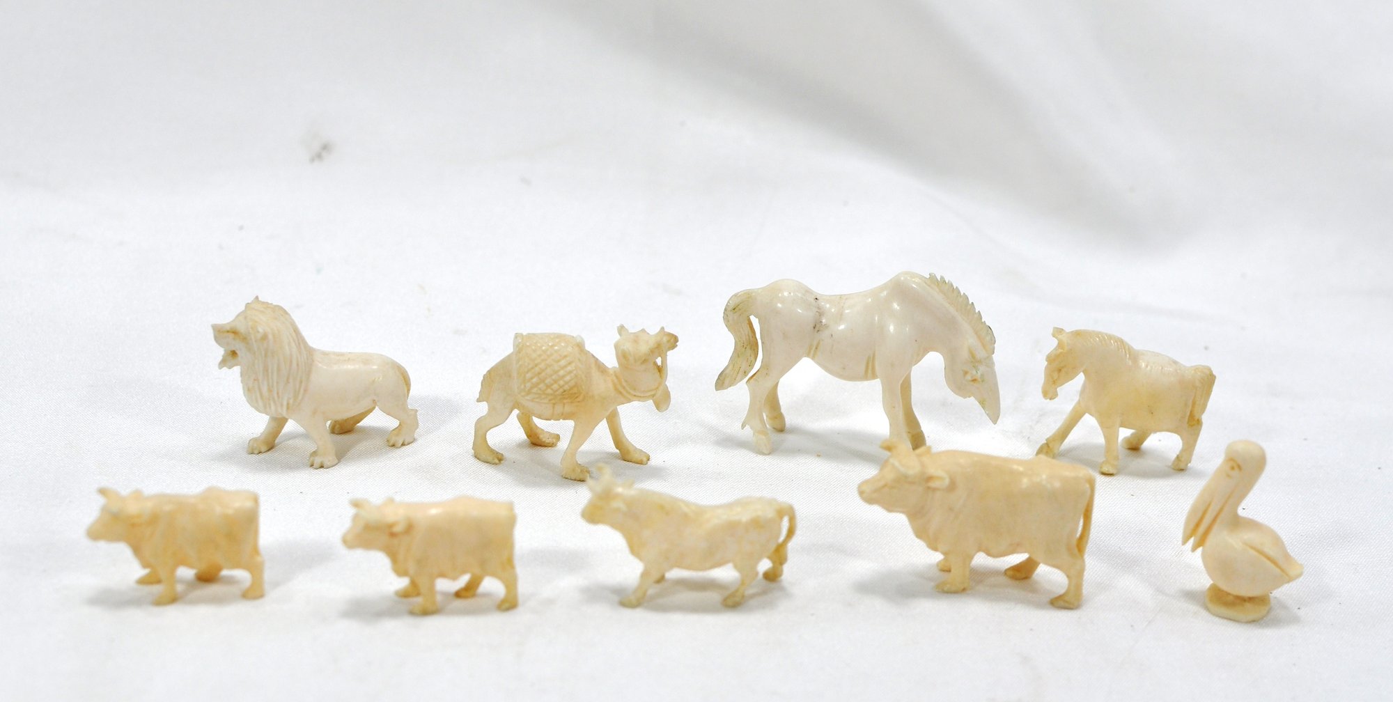 Carved bone animals, largest 1.75 long.