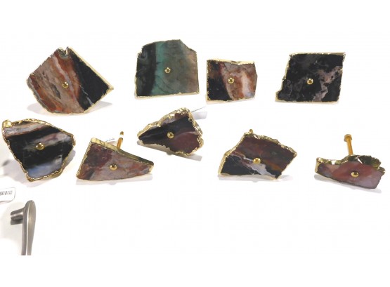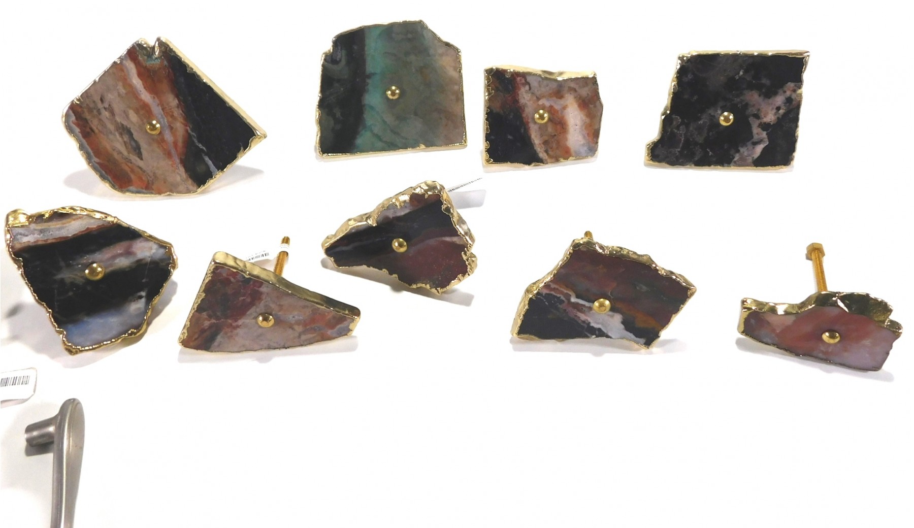 Set of unused kitchen cabinet handles, real stone and brass.