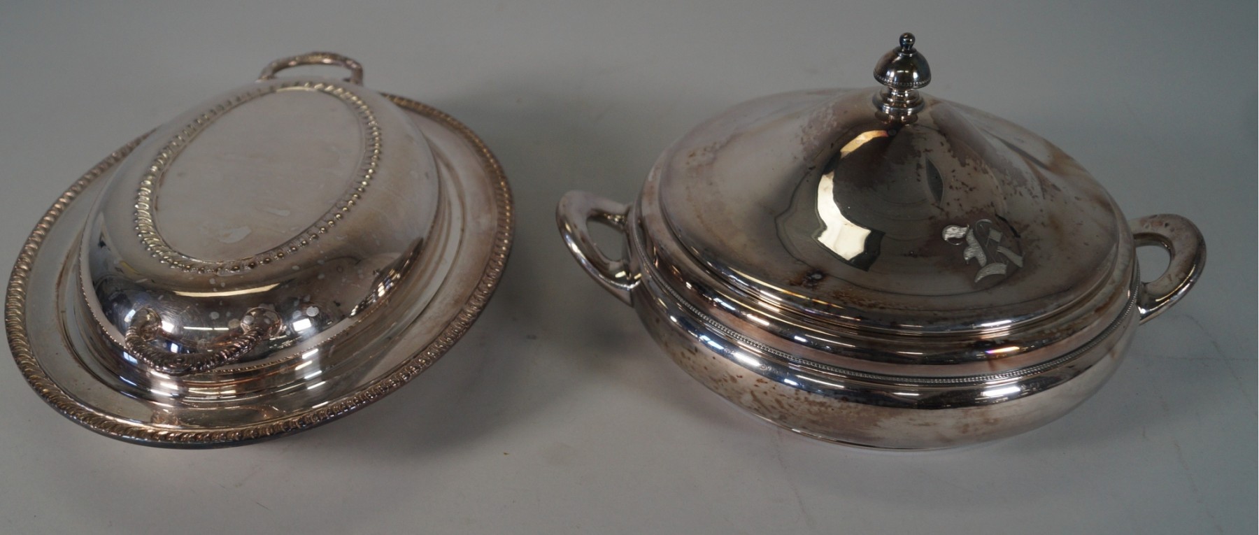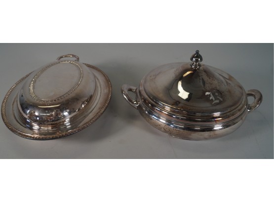 The round dish has a metal insert, that comes out, easy for cleaning. It measures 6 1/2" around. It is marked, "Silver City Plate Co. Quadruple plate. Meriden, CT." Also, the numbers 014.