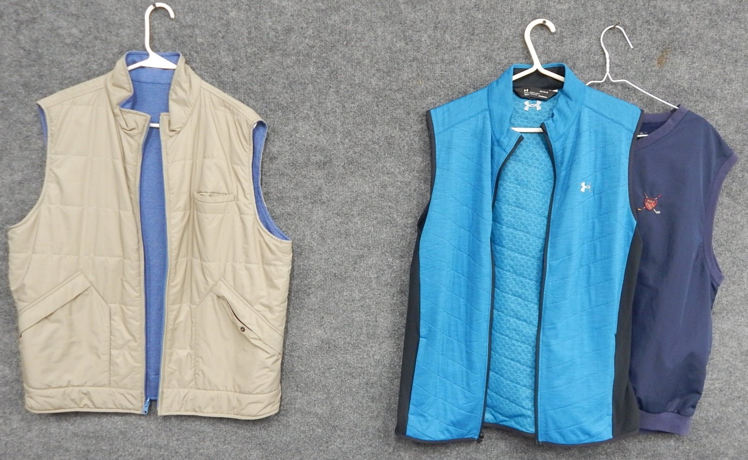 Peter Millar tan zip up reversible vest. Blue on one side. Size L