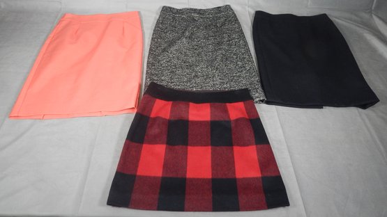 Black and red skirt is a mini. 100% wool with a polyester lining. Side zipper with hook and eye. 15 1/2" from waist to hem.