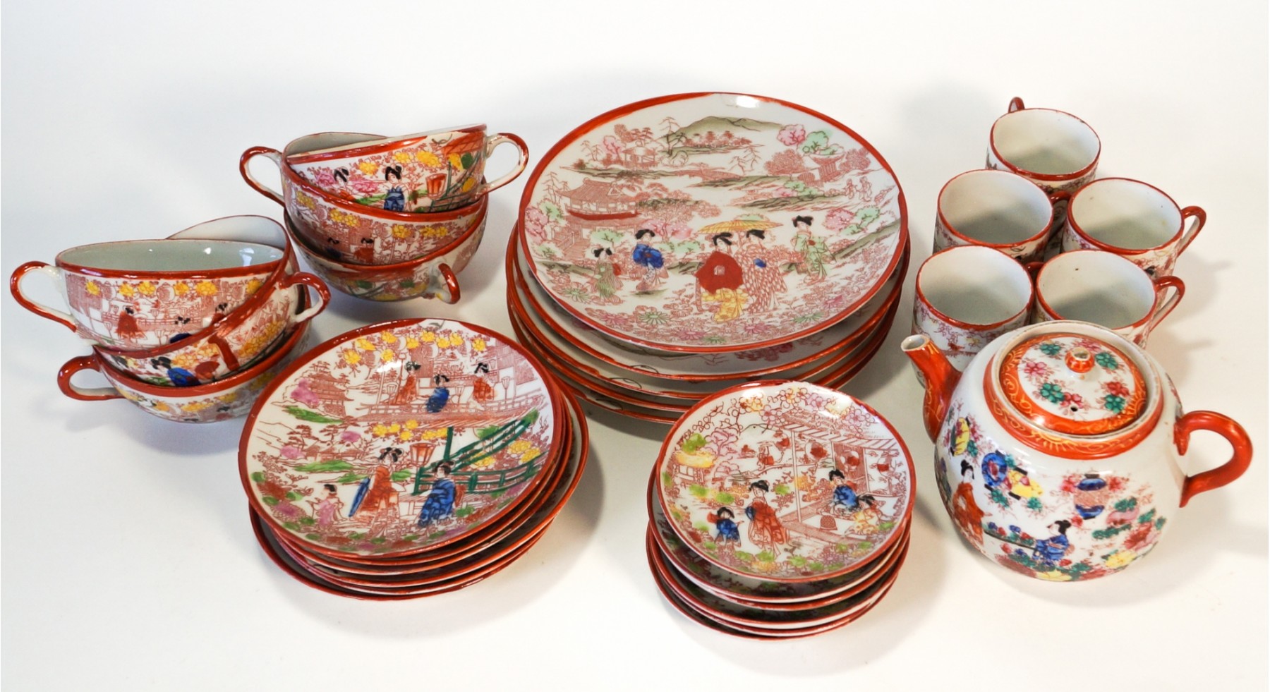 Included are Cups & Saucers, Demitasse Cups & Saucers, Small Tea Pot and Snack Plates.