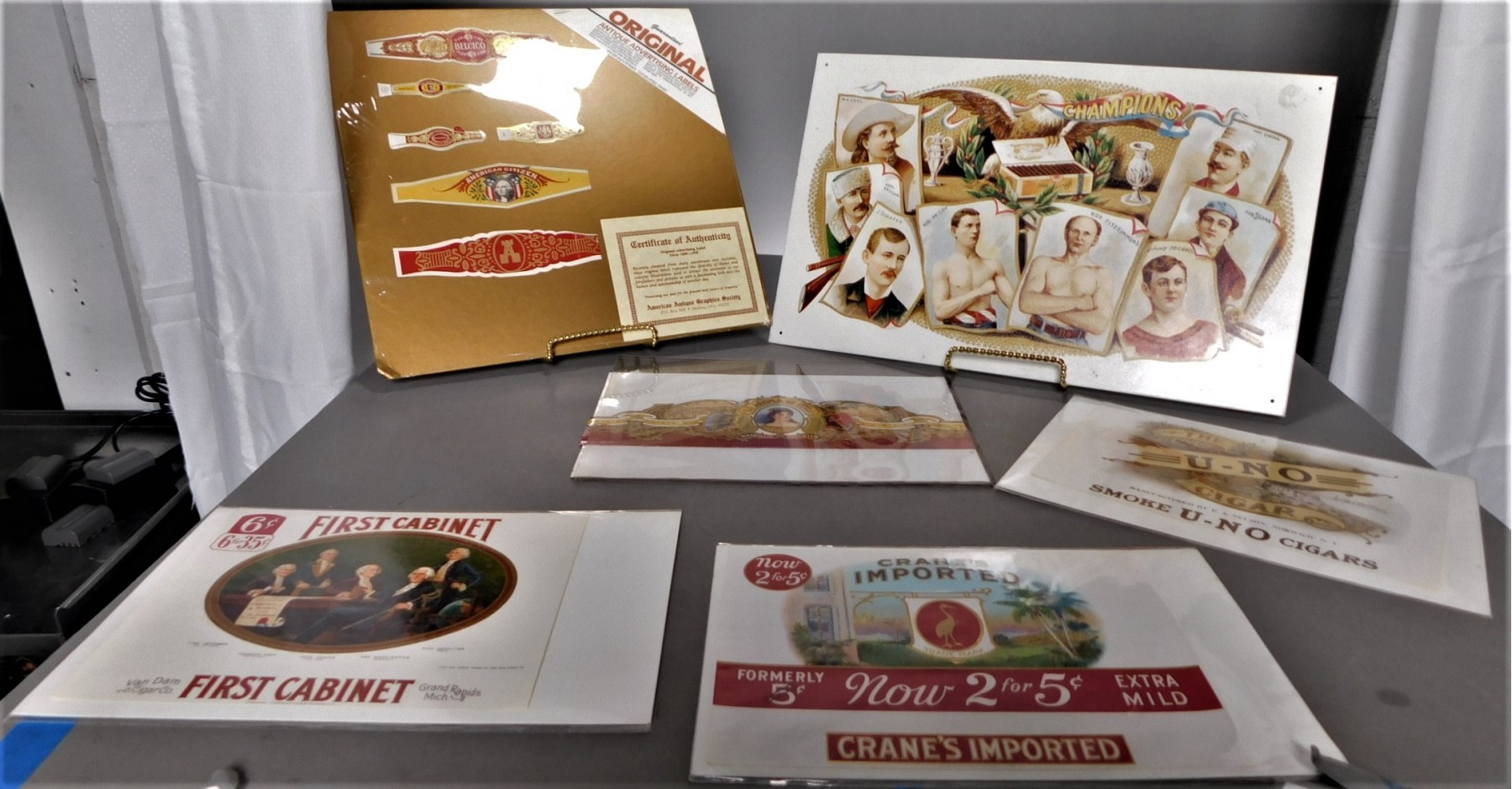 Largest sign is metal, and measures 16 x 10 inches. The other signs are light cardboard.