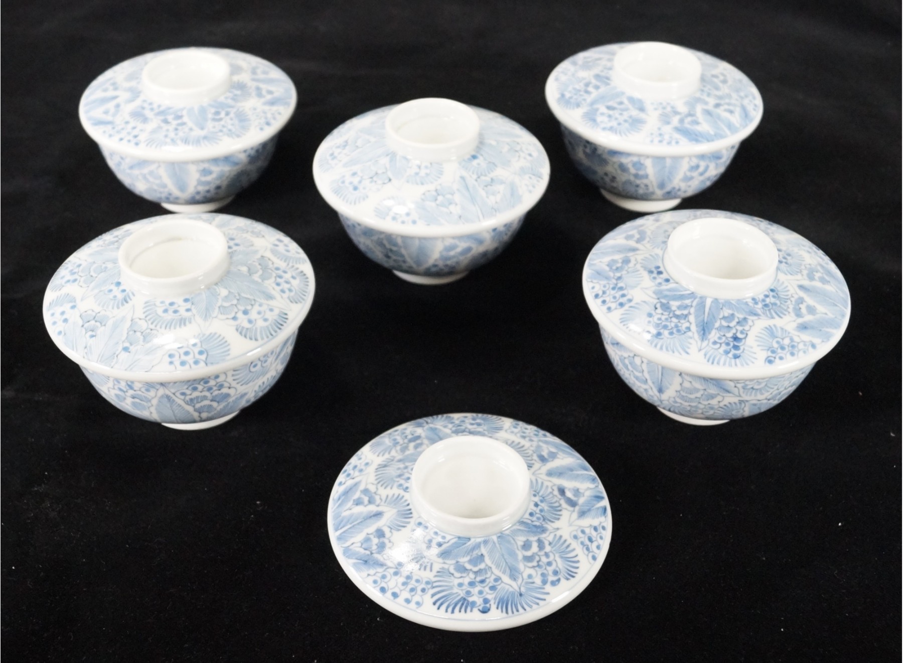 Great set of blue and white ceramic bowls. The set consists of 5 bowls and 6 covers.