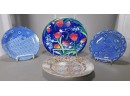The two blue plates are 7 1/4". Small chip on one plate, as shown.