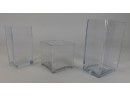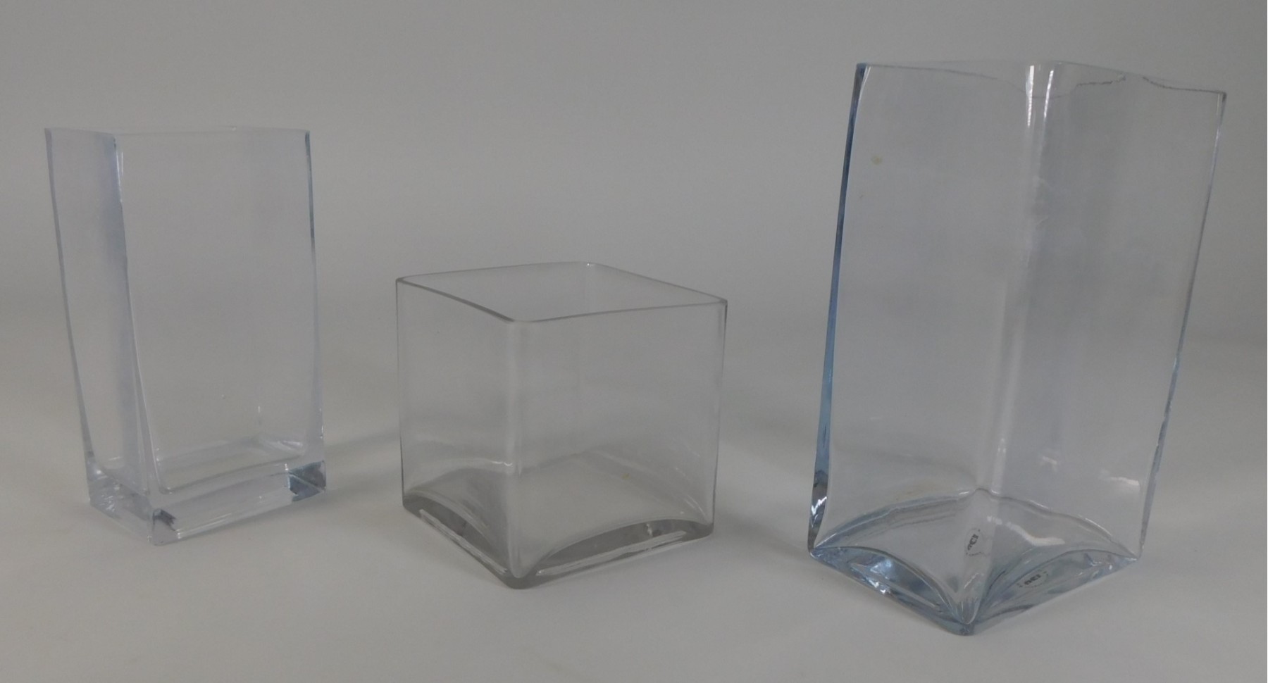 Lovely, glass, heavy bottomed vases. Hand blown in China. Made by UCI. Large vase is 9 1/2". Middle vase is 8". Small one is 5"