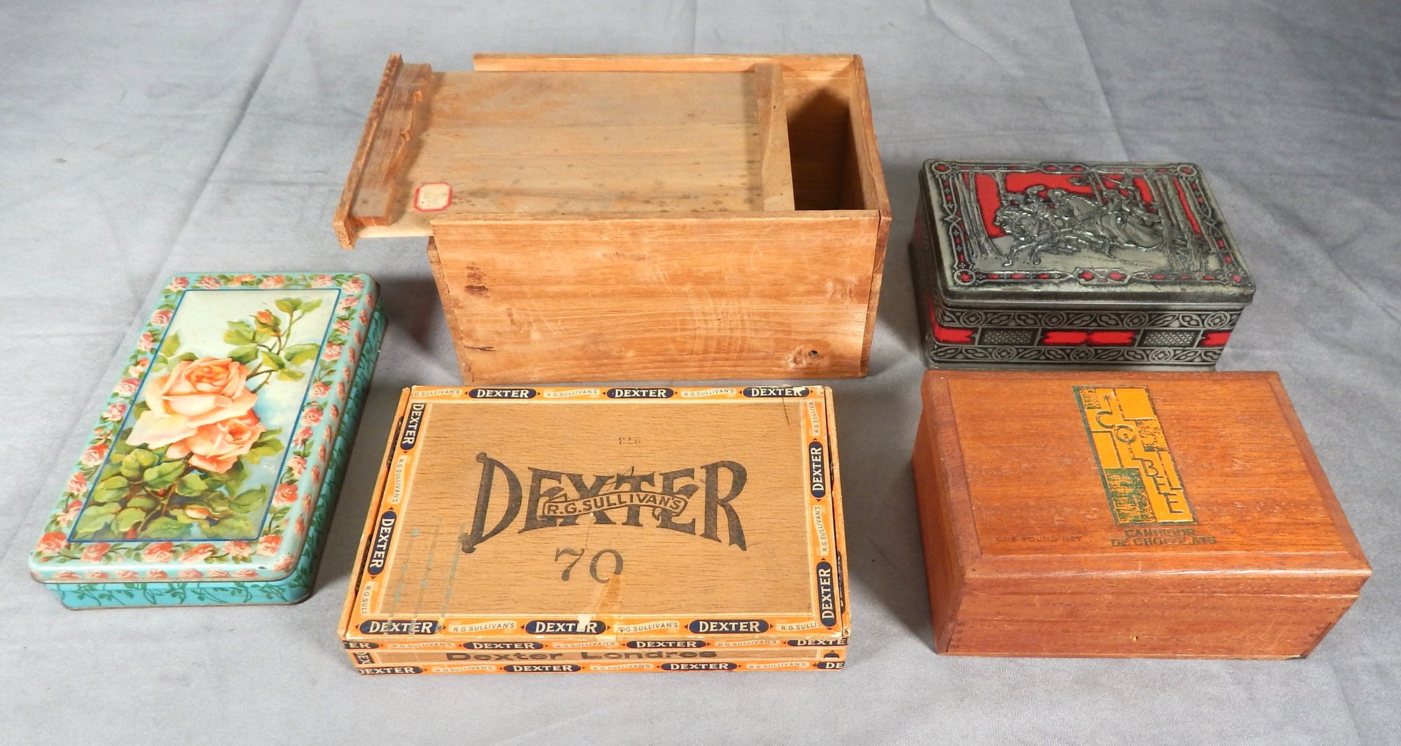 Lot of boxes. For scale, the Dexter cigar box measures 8.5"l x 5.5"w