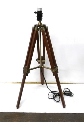 Tripod light - fully extended measures 27"h. As a desk lamp - measures 18"h. In working condition; however, a small black plastic piece of the outside of the socket has broken off - see photo as shown.