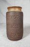 Beautiful incised decorations surround this nice brown MCM vase. Initials "N B" on the bottom. Measures: 7"h x 3.5"dia. Very good condition.