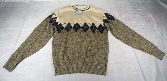 Nice vintage men's sweater with the tag still attached. It is size large. Tan and black. 100% acrylic. Never worn. Shipping is available.