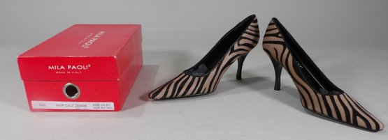 3 1/2" heels. Pointed toe. Leather upper. Leather Sole. Made in Italy. Size 8 1/2 B. There is some wear on the inside of each shoe from the stickers, as shown. Other than that, they haven't been worn. Shipping is available.