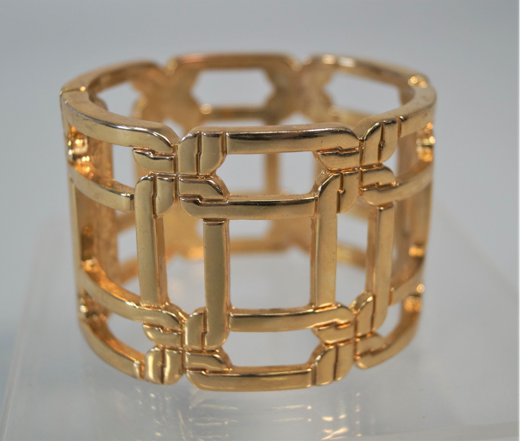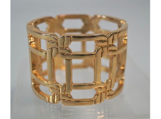 Listed is a pretty woven gold tone cuff bracelet by Milly. It measures 1.75" high x 7" in circumference when closed. It has a magnetic closure. In good condition with some minor signs of wear. Please see photos for details.