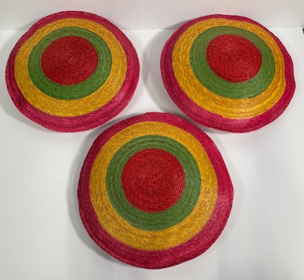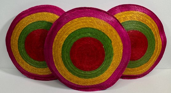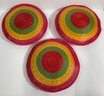 Mixed media featuring concentric circles of red, green, yellow, and pink. Each measures approximately 2'' x 16''.