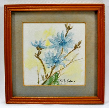 Framed flower watercolor by Connecticut artist Myrtle Carlson.