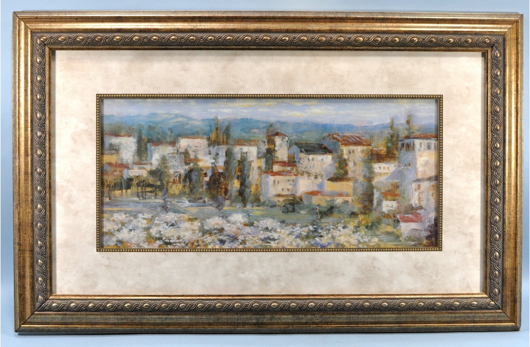 Attractive print, framed with glass.