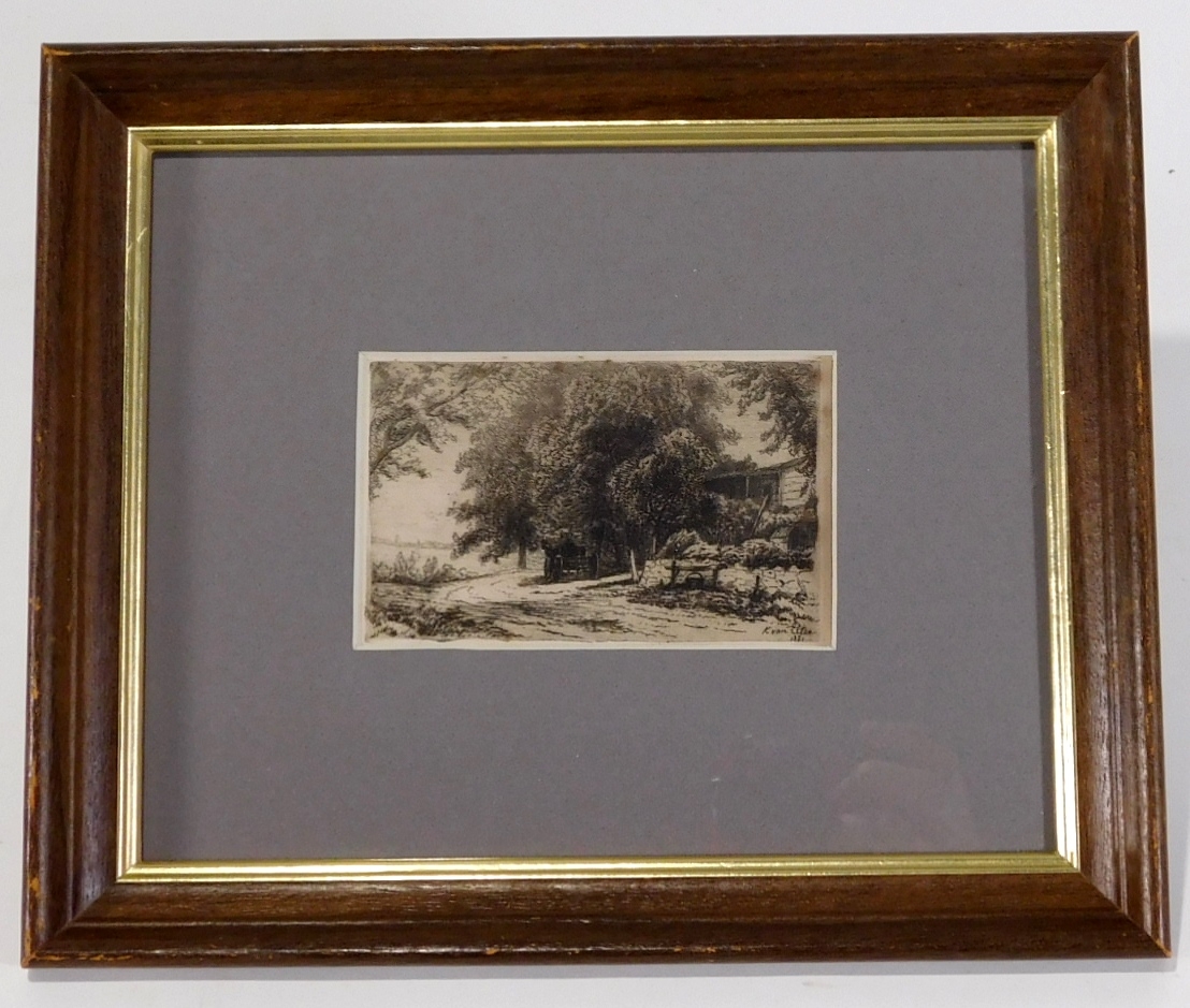 Antique original etching of old house by Hendrik D. Kruseman VAN ELTEN.
