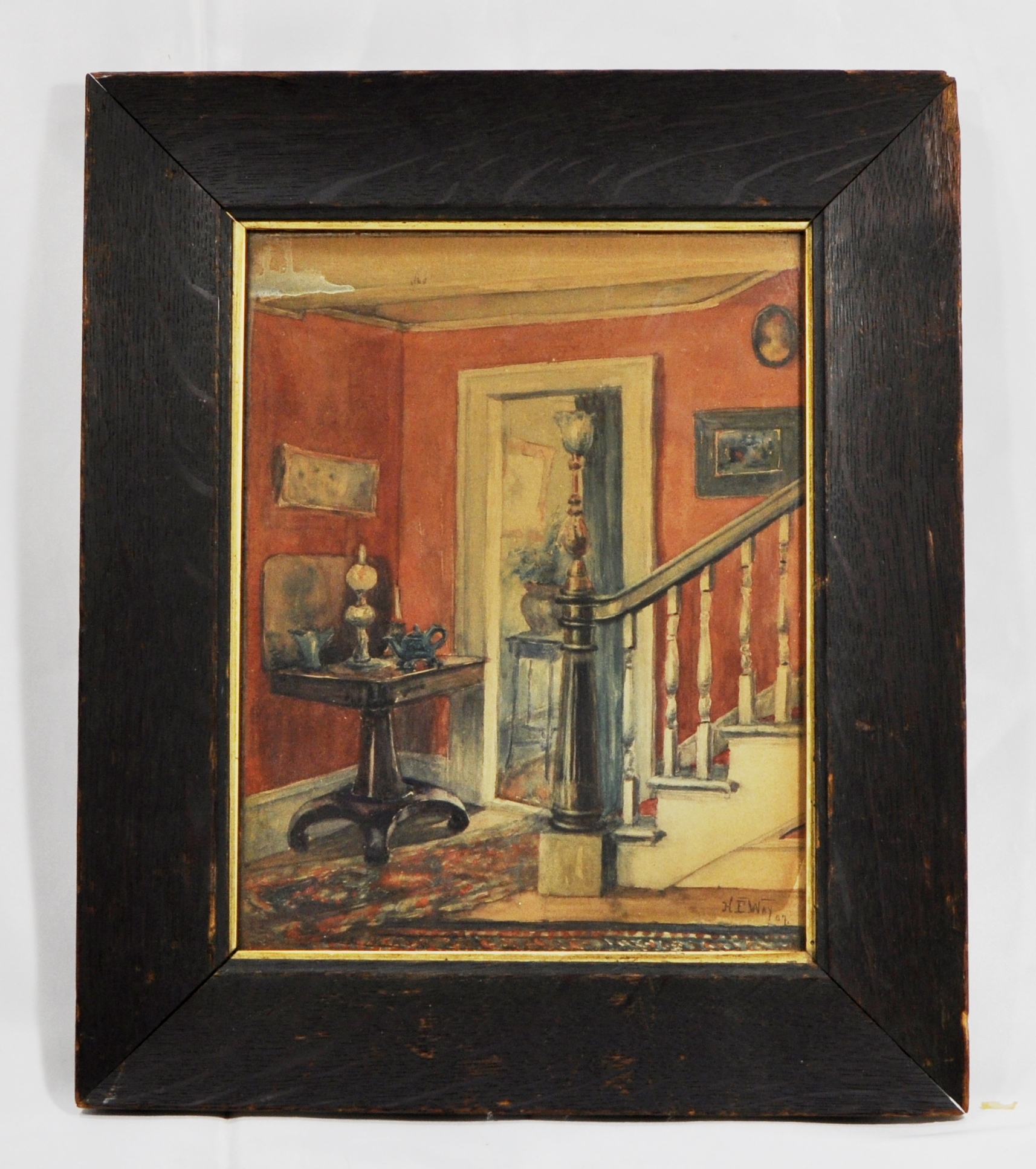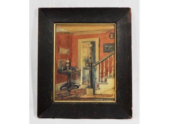 Original antique watercolor of house interior.